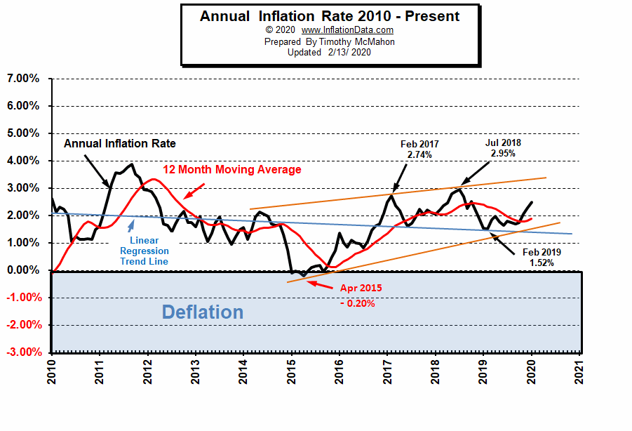 Basically, that means that your cost of living goes up, while your income doesn't stretch as far as it once did. Im april 2021 erreichte der index fast 268 . Even though it's a fairly common term, what, exactly, does "inflation" mean? For example, the rate of inflation in 2020 was . Inflation rate for 2020 was 1.23%, a 0.58% decline from 2019. Current us cpi inflation, which is released monthly by the us bls, averaged 1.68% in february 2021.